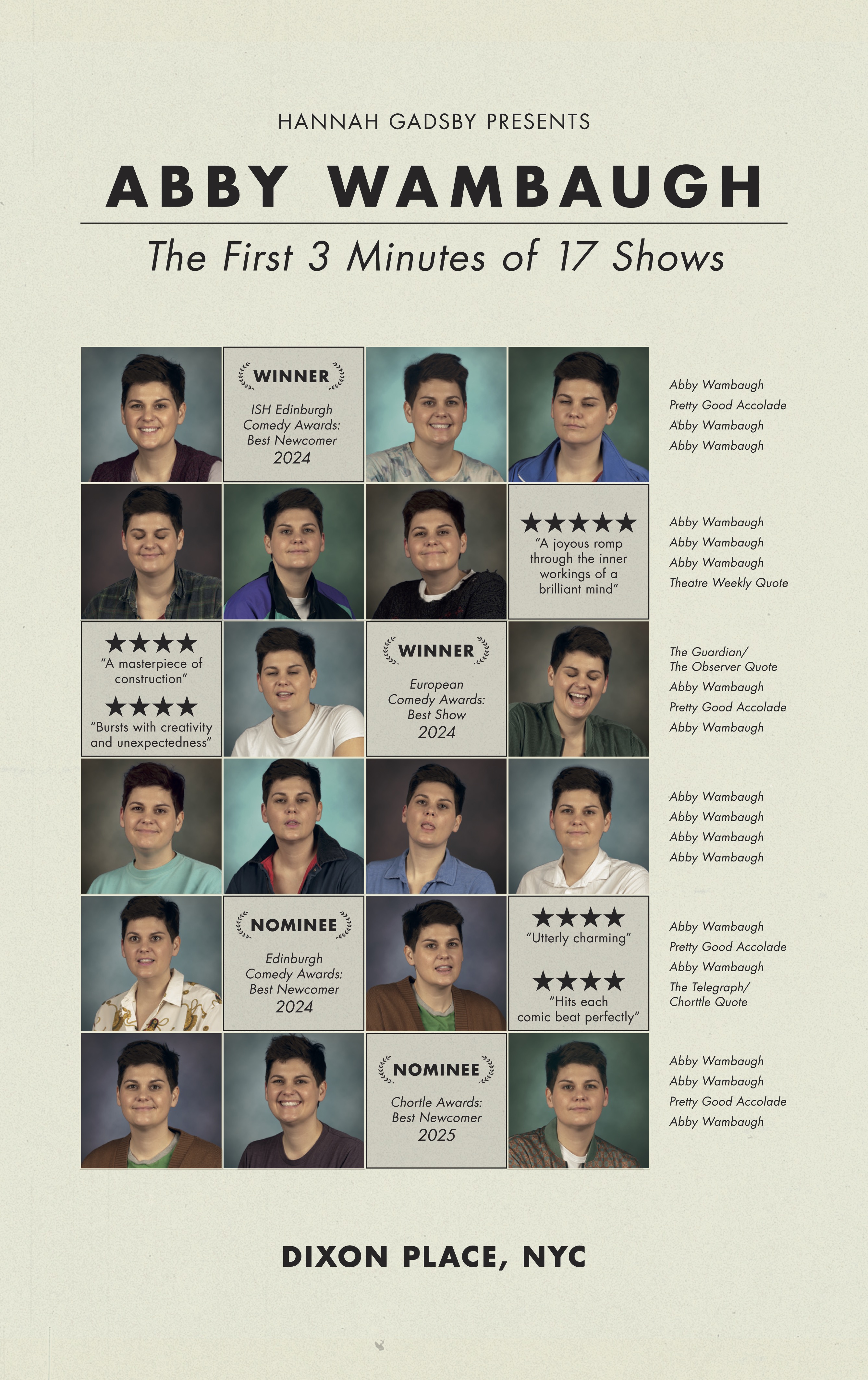 ABBY WAMBAUGH is an American comedian, writer and improviser who lives in Copenhagen and regularly performs in the UK. Abby debuted at the Edinburgh Fringe in 2024, winning Best Newcomer in the Jones ISH Comedy Awards, Best Show in the European Comedy Awards, and Best Comedy in the Theatre Weekly Fringe Awards. Abby was also nominated for Edinburgh Comedy Awards Best Newcomer, Comedian’s Choice Best Newcomer, NextUp’s Biggest Award in Comedy and Best Newcomer at the 2025 Chortle Awards. Abby has a BA in Humor and Social Change and was an Autumn 2021 Resident of St. Nells Humor Writing Residency (run by New Yorker cartoonist and comedian Emily Flake).